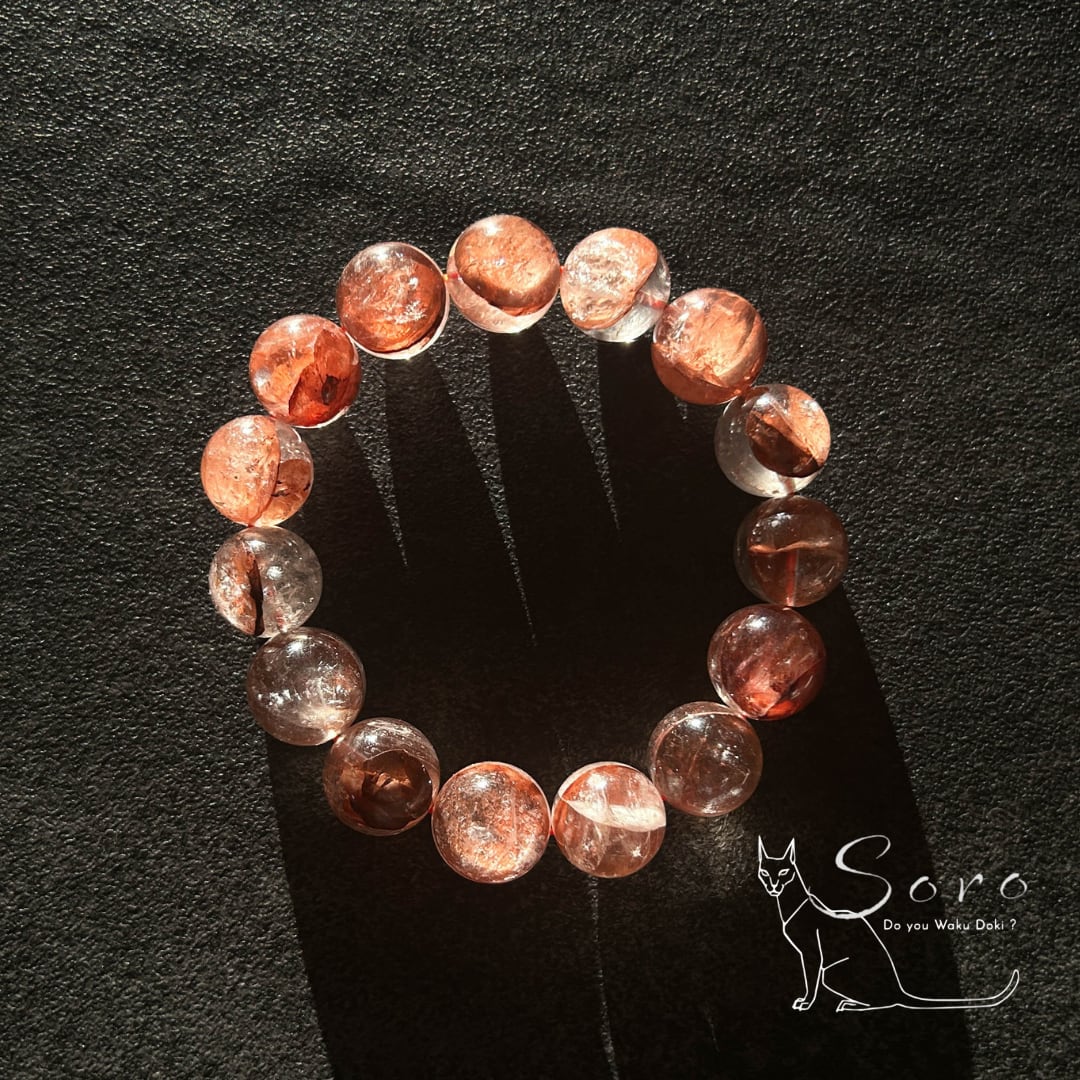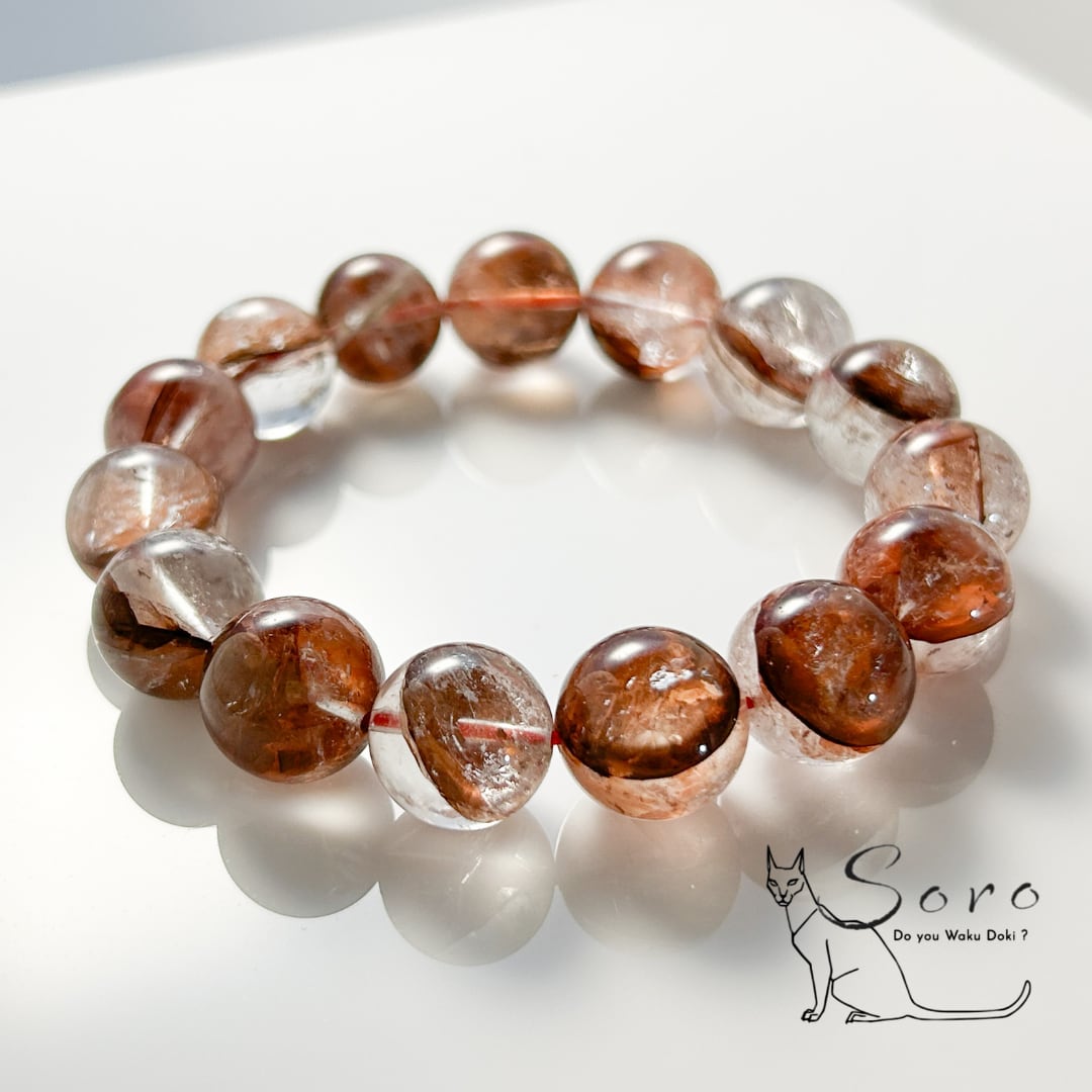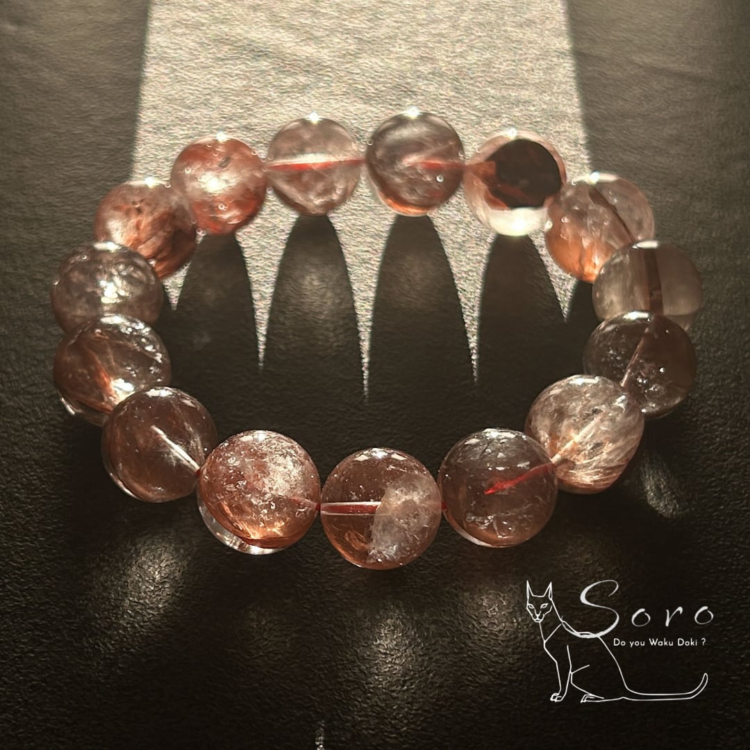 水晶の中に大地由来のライモナイトを内包した、存在感あるライモナイトインクォーツを贅沢に使用した大玉ブレスレット。
