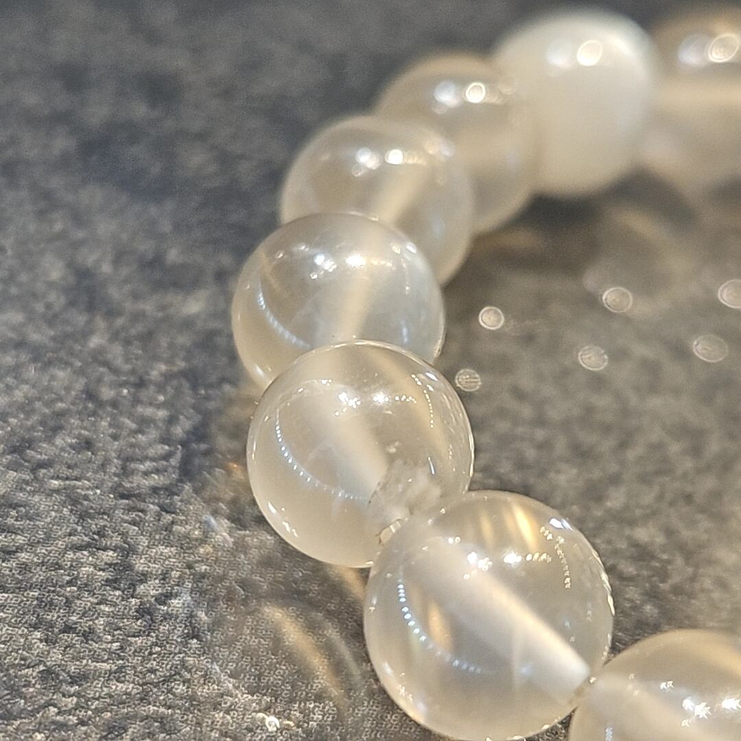 ムーンストーンは感情を穏やかにし、ストレスを和らげる効果があるとされます。特にグレームーンストーンは、落ち着きと安定感を与える力が強いと言われています。