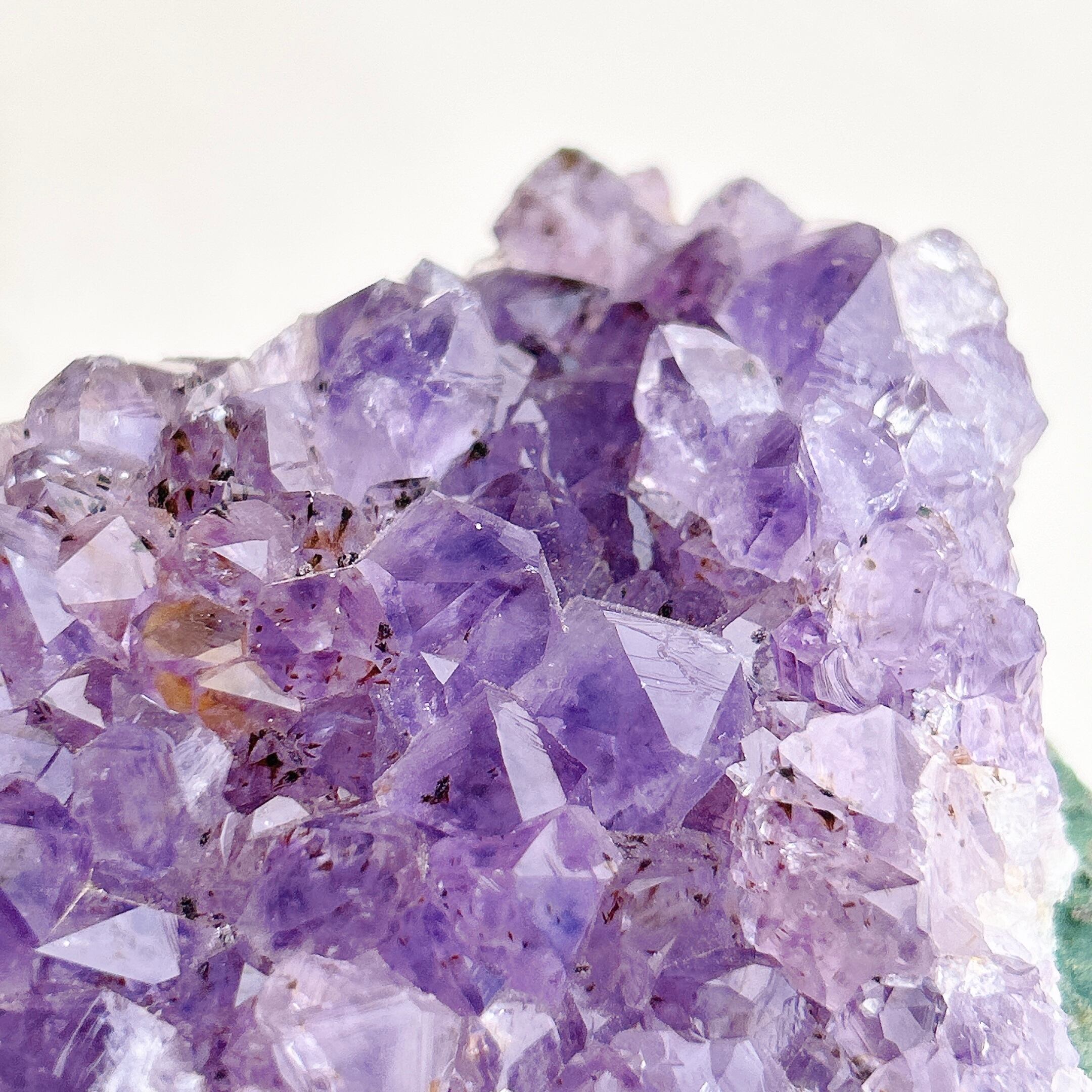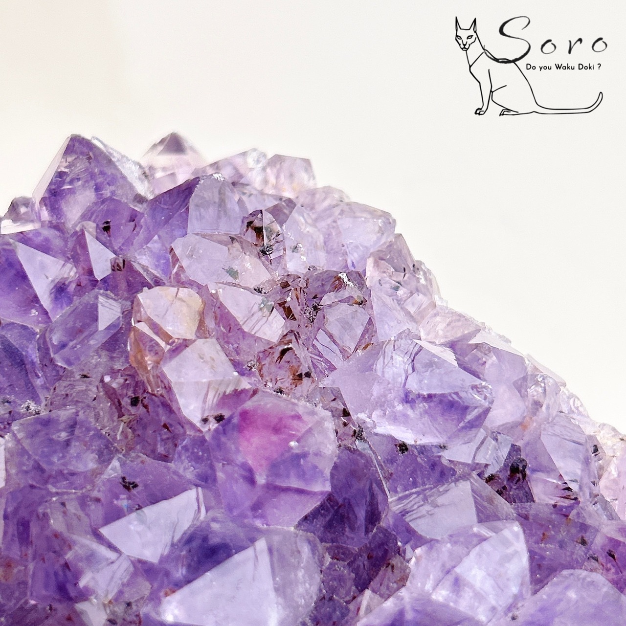 アメジストは「癒しの石」とも呼ばれていて、クラスター(集合体)はそのエネルギーを強めるとされてる。ストレスや不安を和らげて、心を穏やかにする効果が期待される。