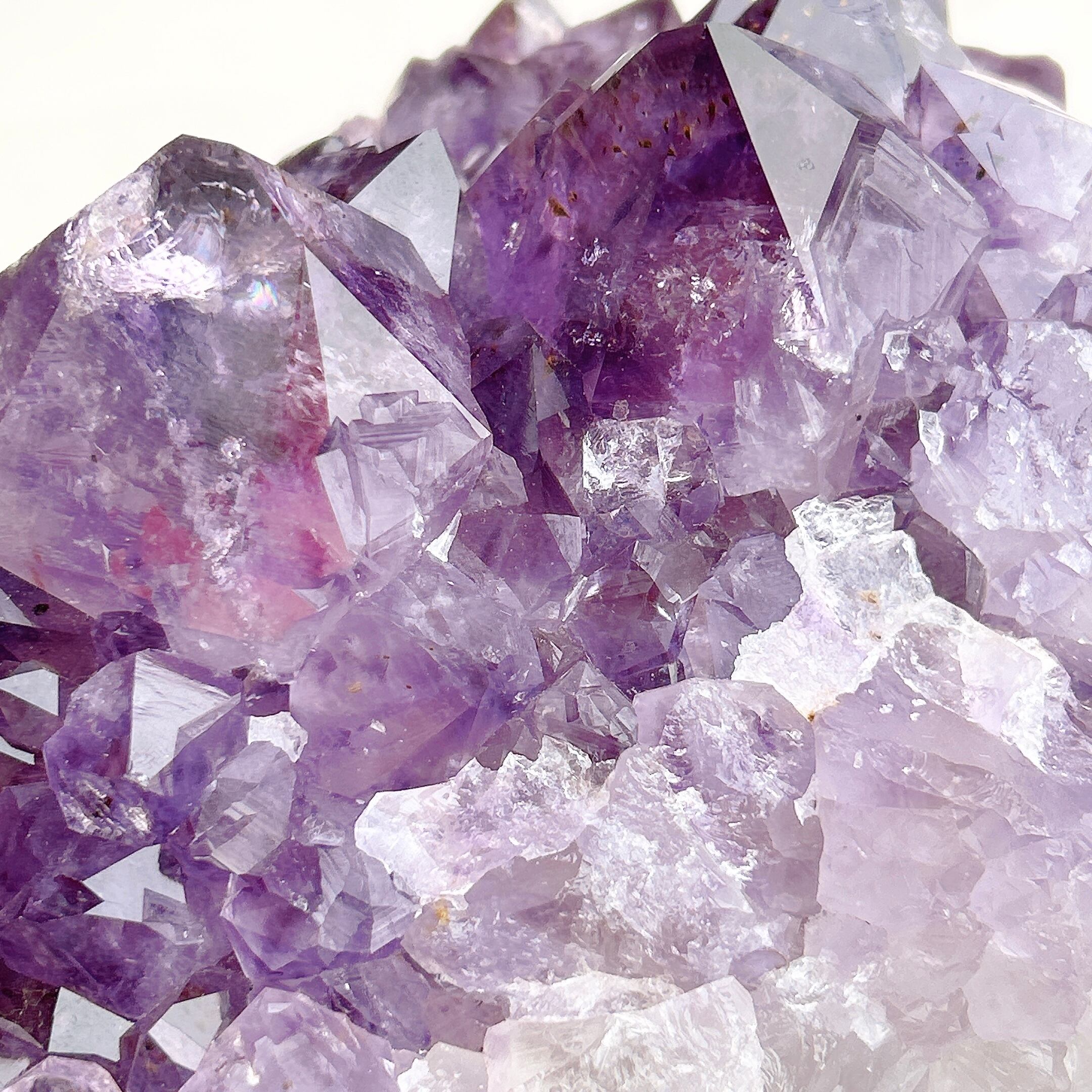 アメジストは「癒しの石」とも呼ばれていて、クラスター(集合体)はそのエネルギーを強めるとされてる。ストレスや不安を和らげて、心を穏やかにする効果が期待される。