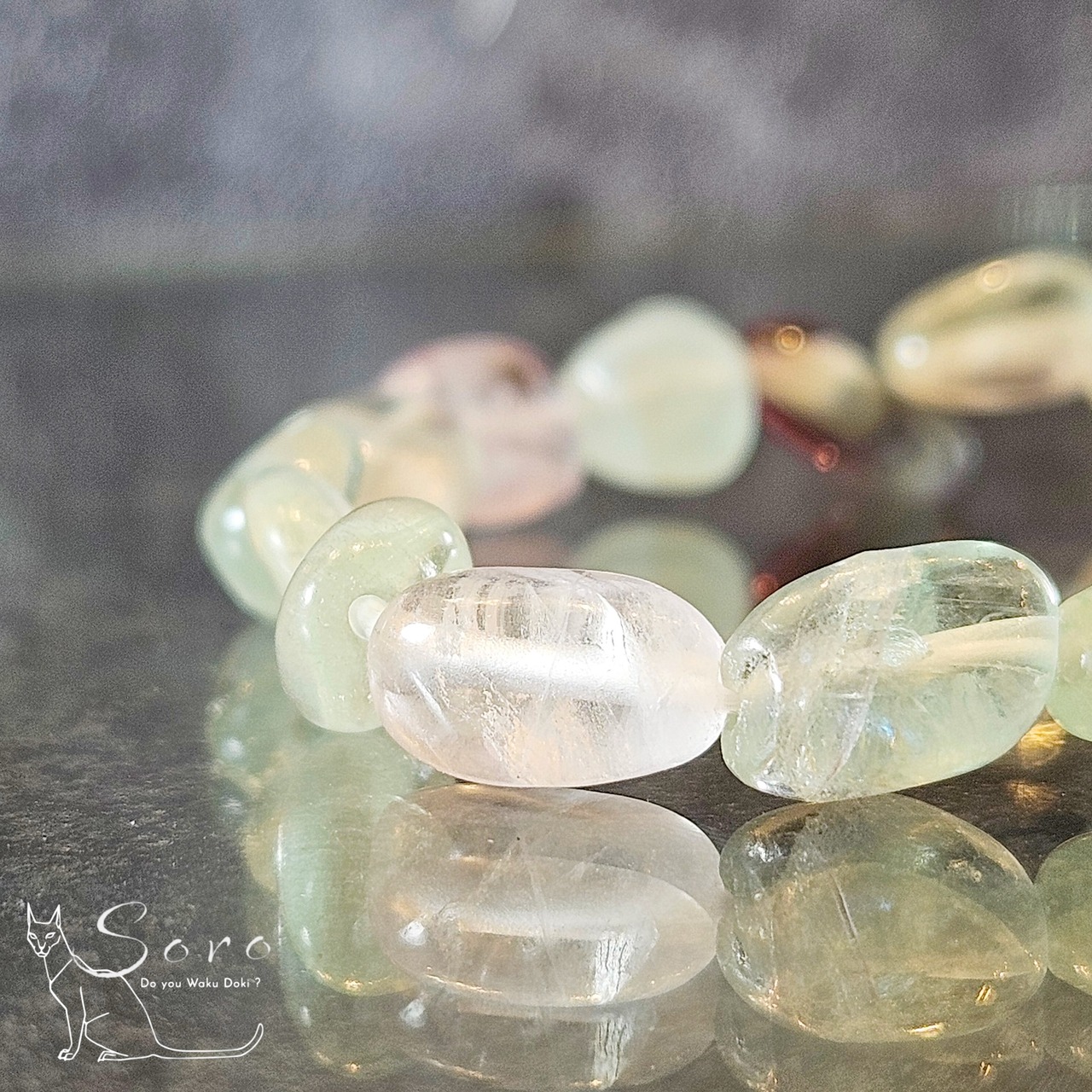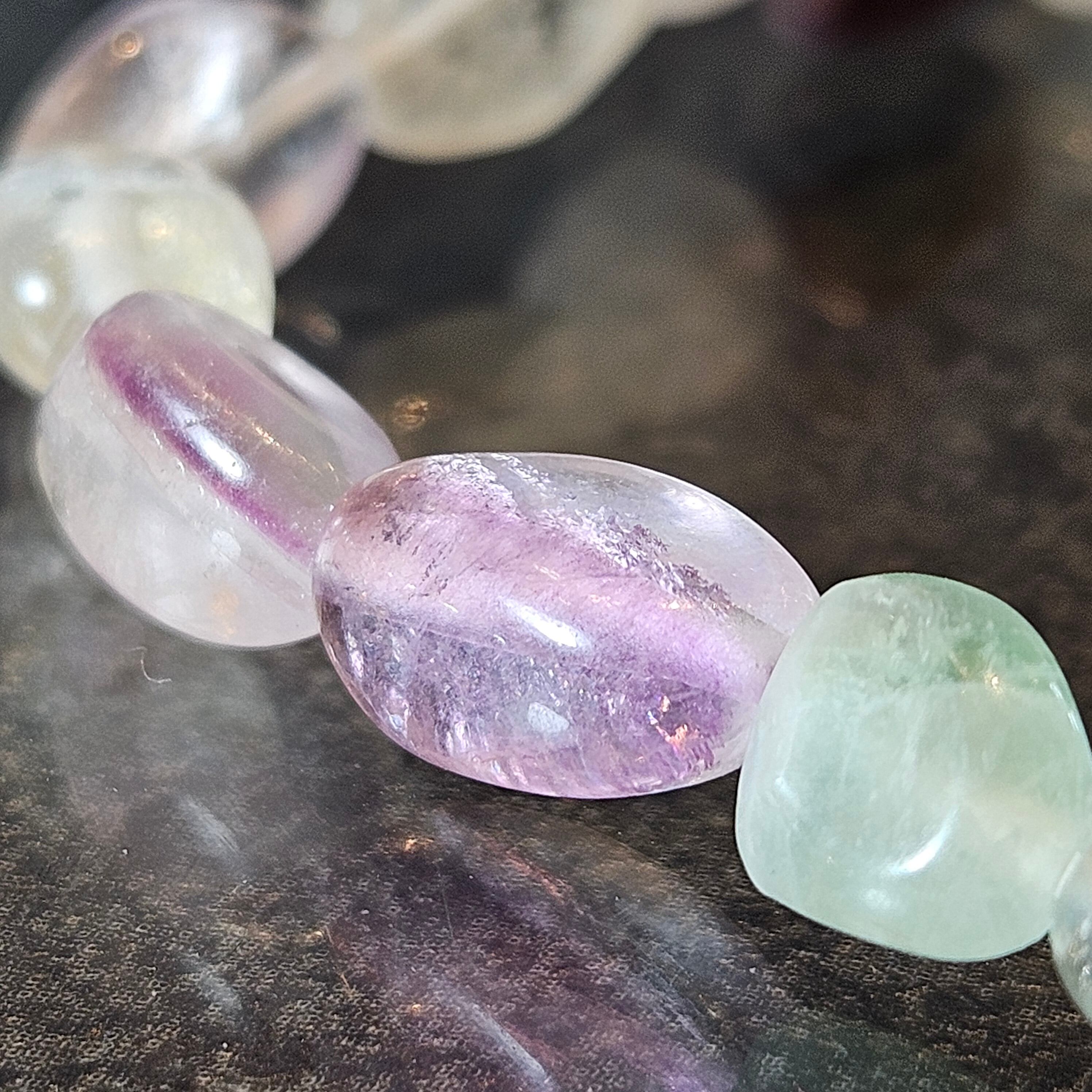 フローライトは「癒しの石」とも呼ばれ、感情を穏やかにし、ストレスを和らげる効果があるとされています。