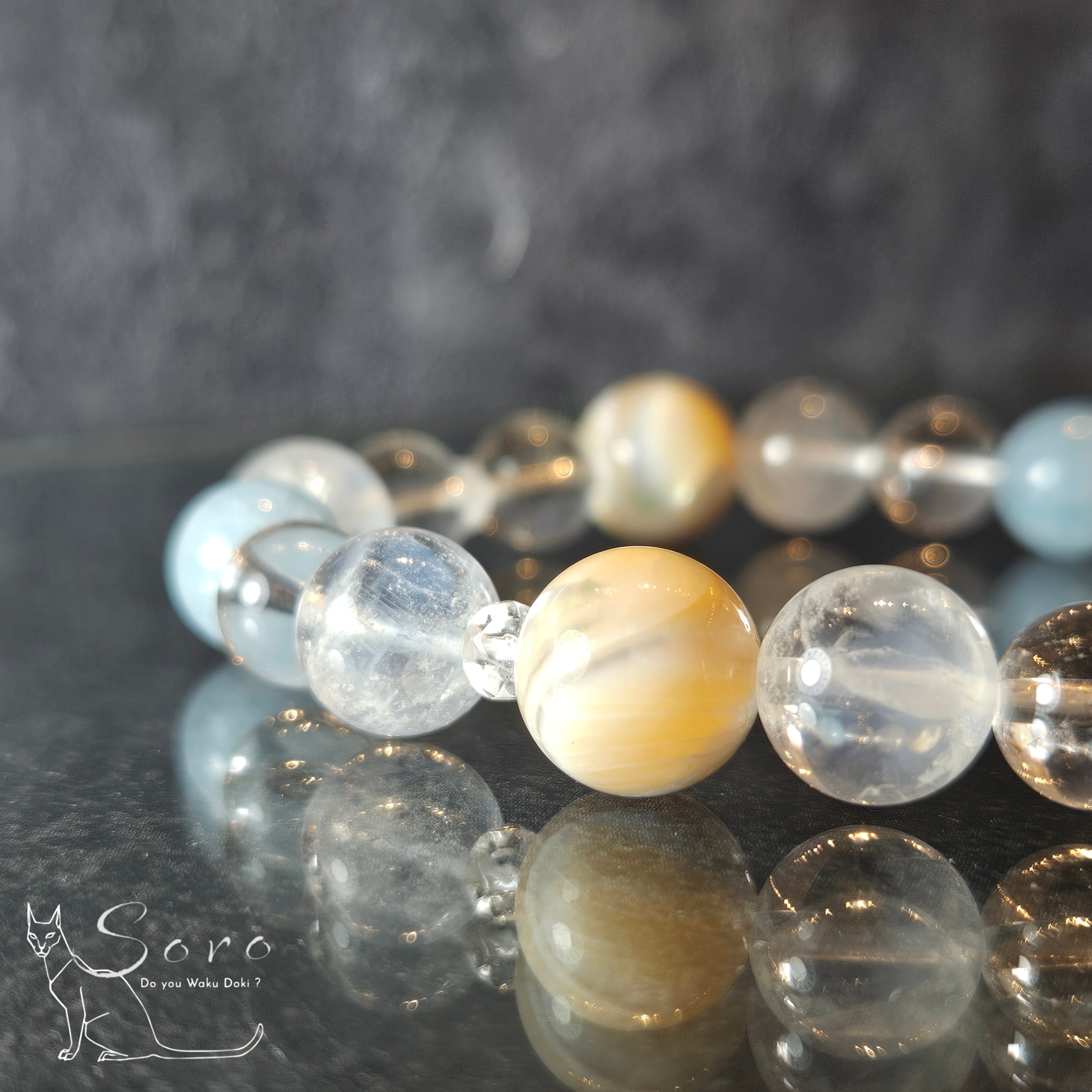 アクアマリンがコミュニケーションを円滑にし、マザーオブパールが人間関係を調和させます。