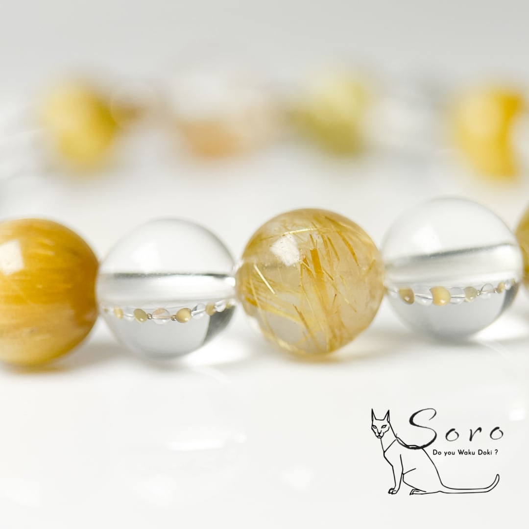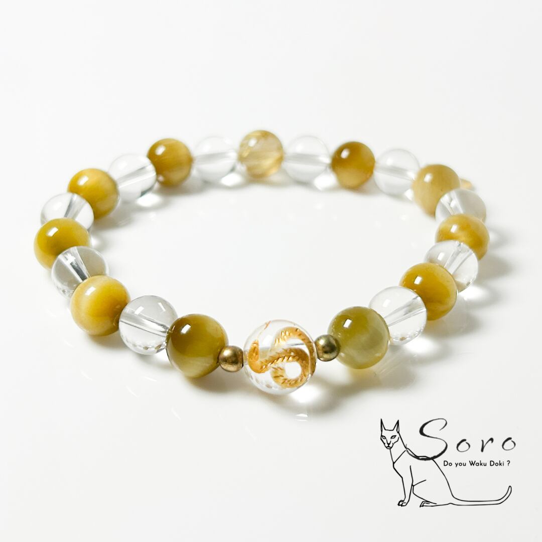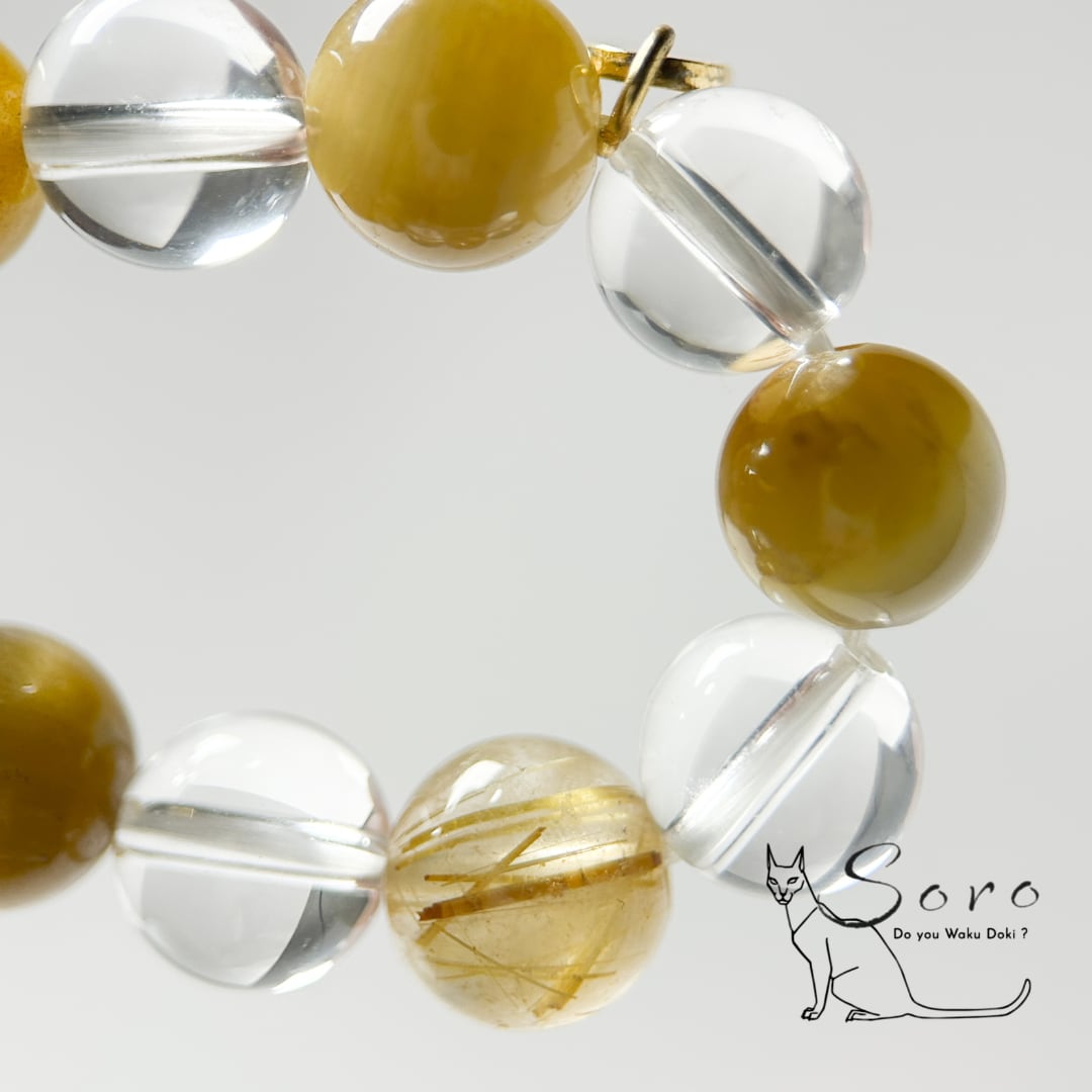 洞察力や直感を養うゴールデンタイガーアイと、集中力を高めるルチルクォーツの相乗効果により、目標達成をサポート。