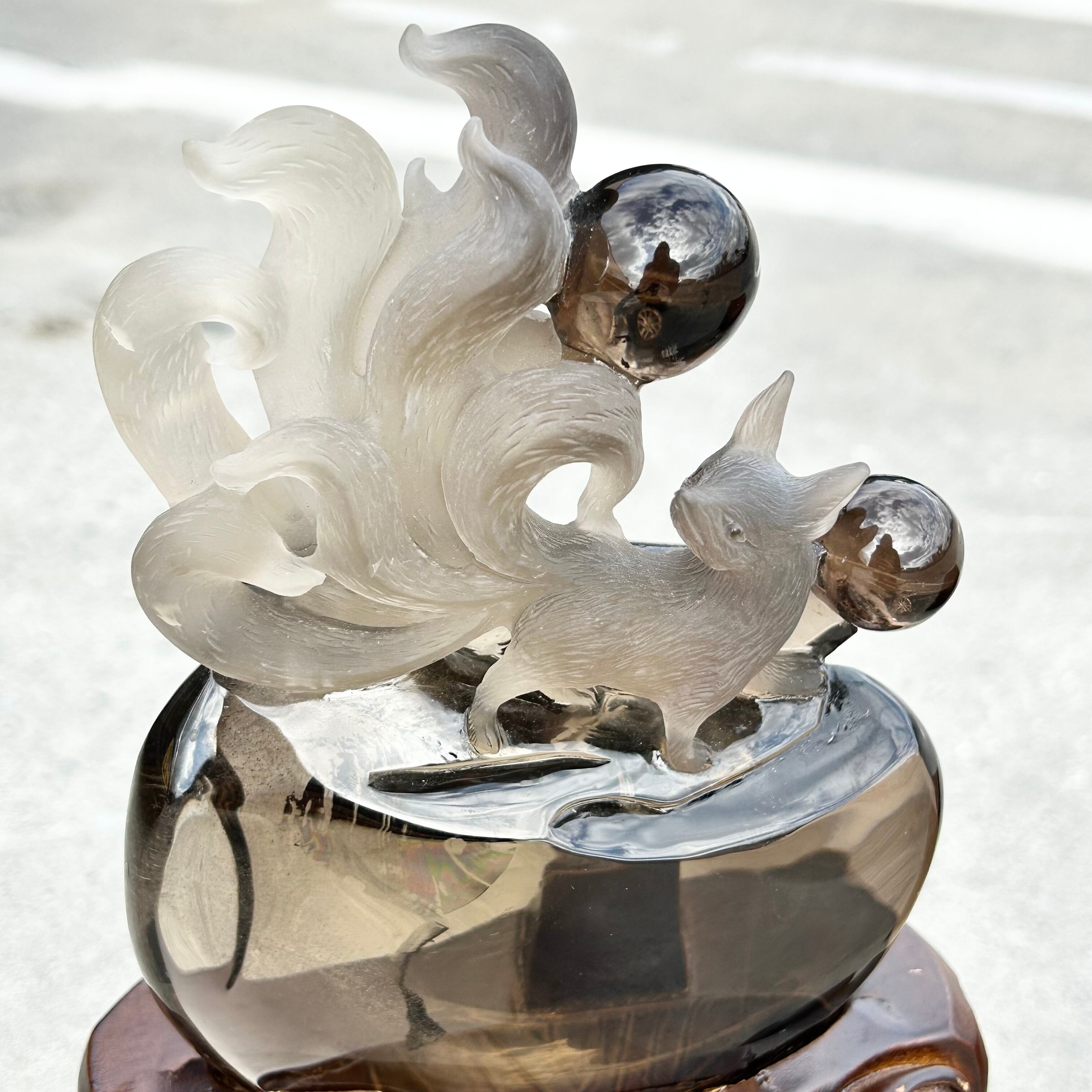 九尾狐の変化を象徴する性質が、スモーキークォーツの癒しと浄化作用と相まって、自己改革や新しい一歩を踏み出す助けになる。