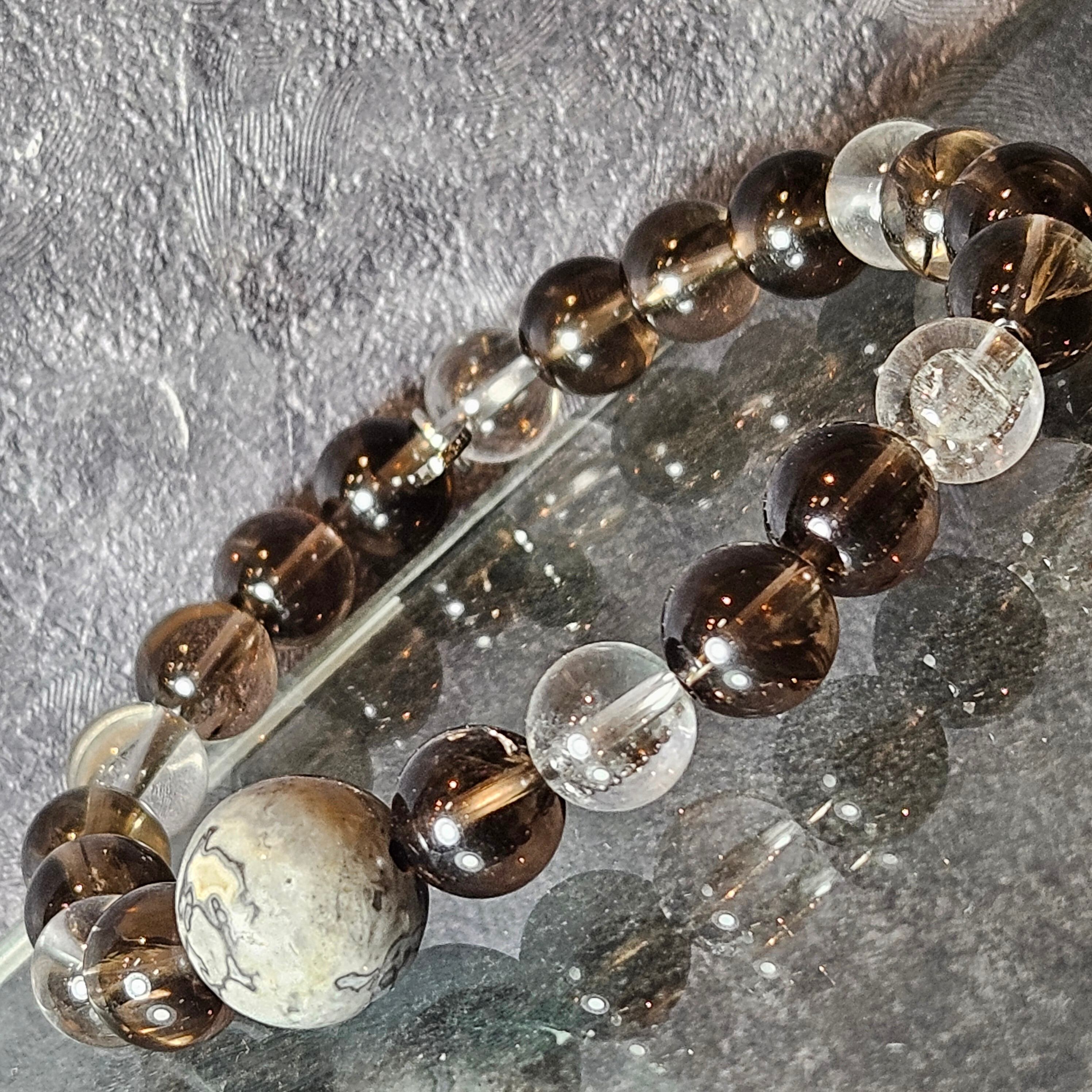 相性: スモーキークォーツのグラウンディング効果、ゼブラジャスパーの調和、そして水晶の浄化と増幅が絶妙に調和し、全体的なバランスと安定をもたらします。