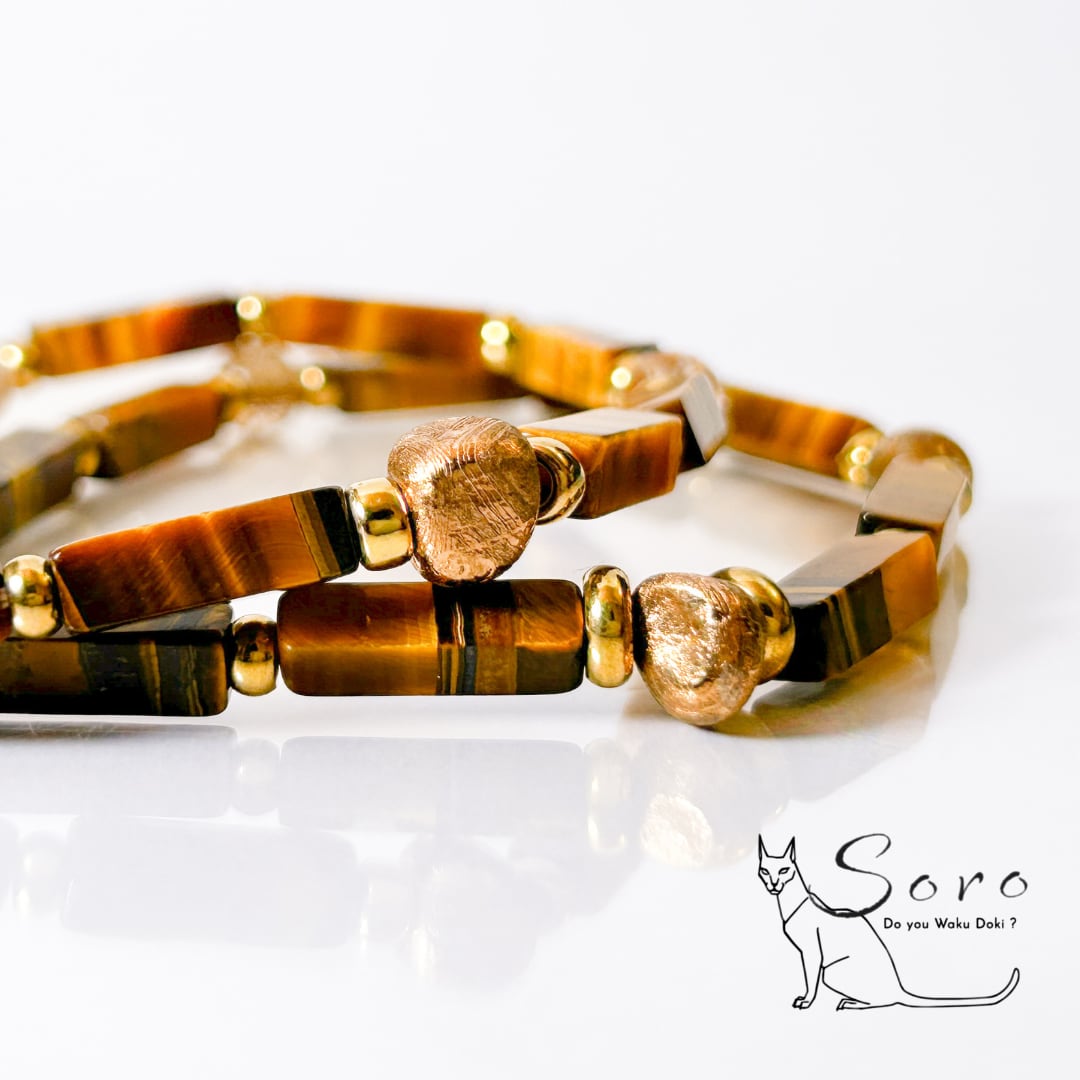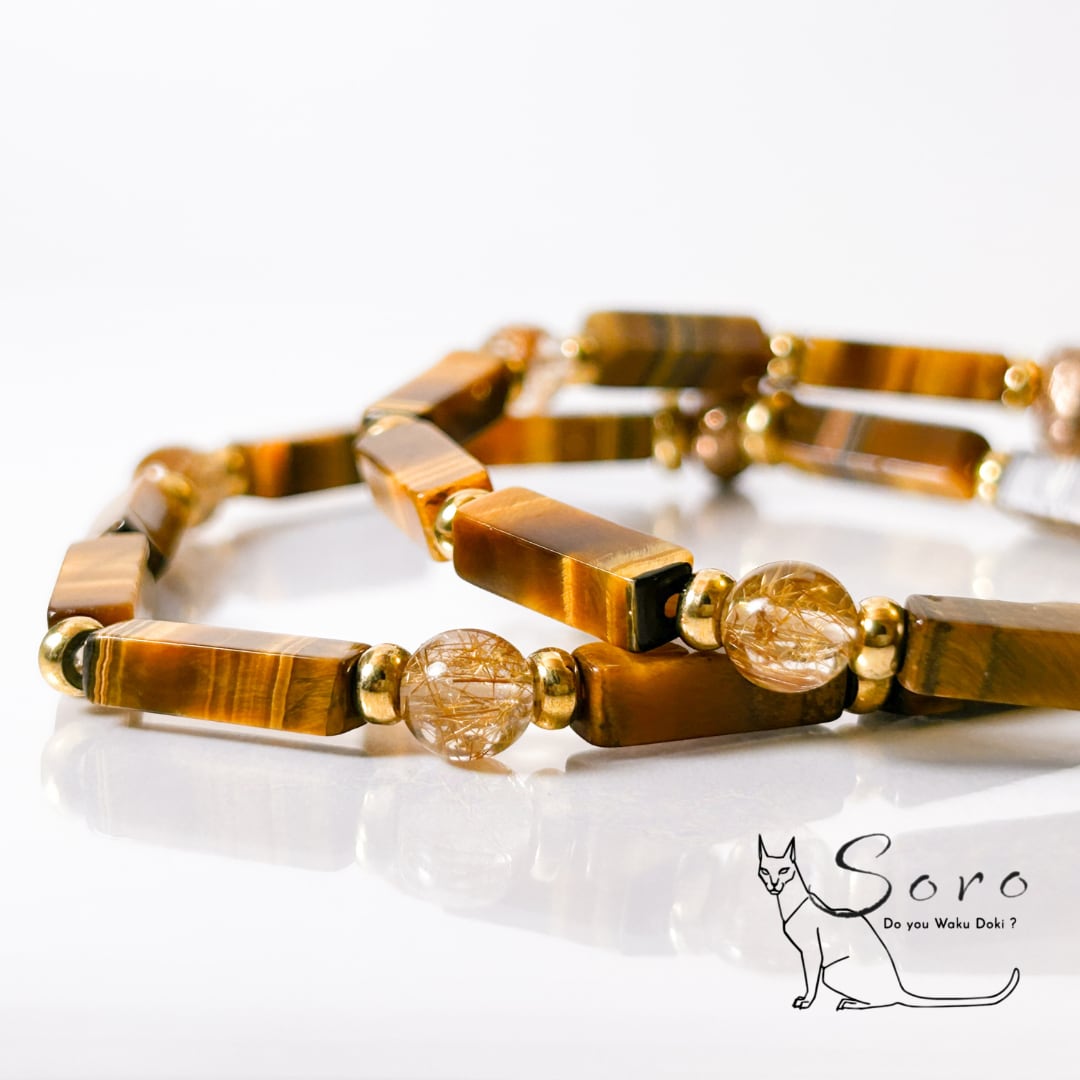 そこにタイガーアイの洞察力と行動力、ルチルクォーツの成功運や集中力をプラスしたことで、チャンスをつかみにいく力を後押ししてくれる組み合わせに。