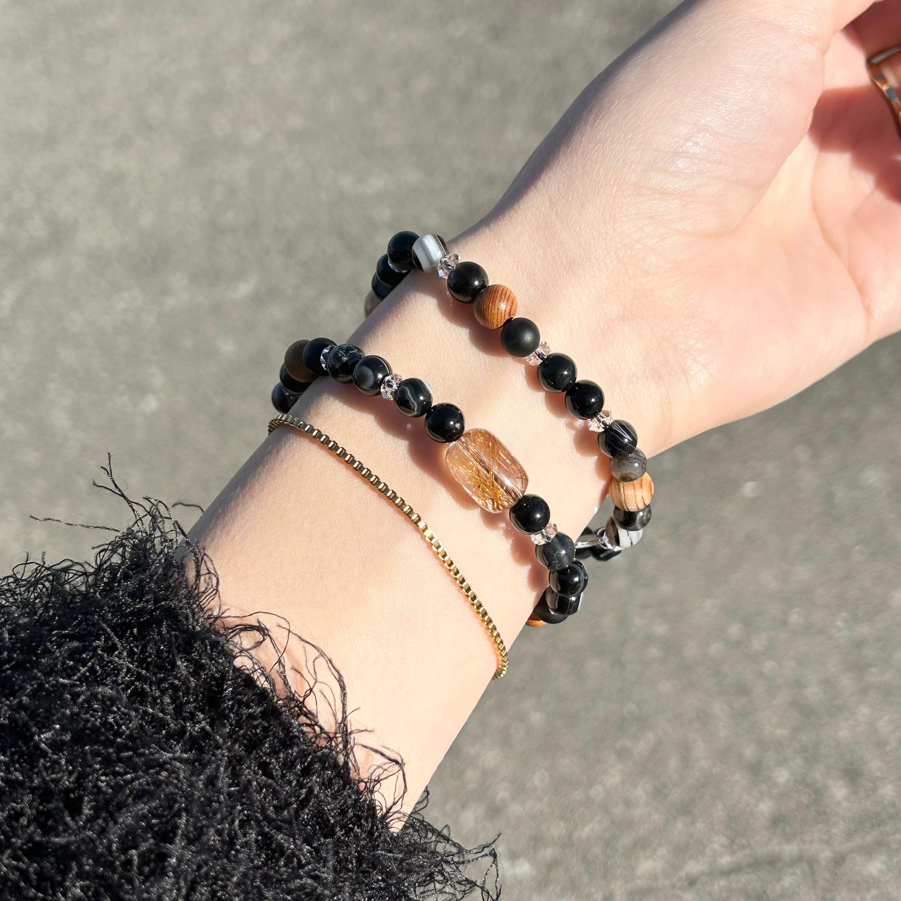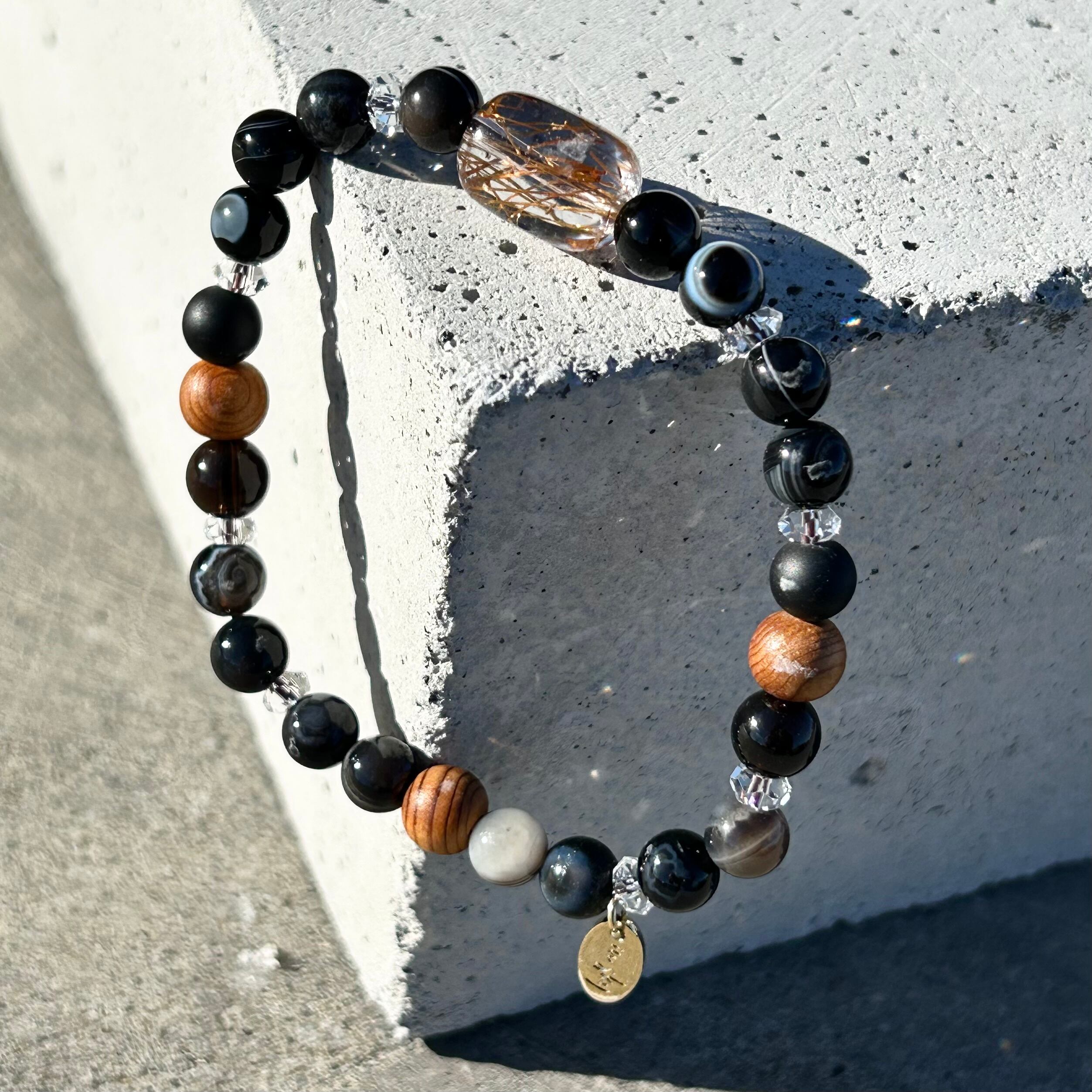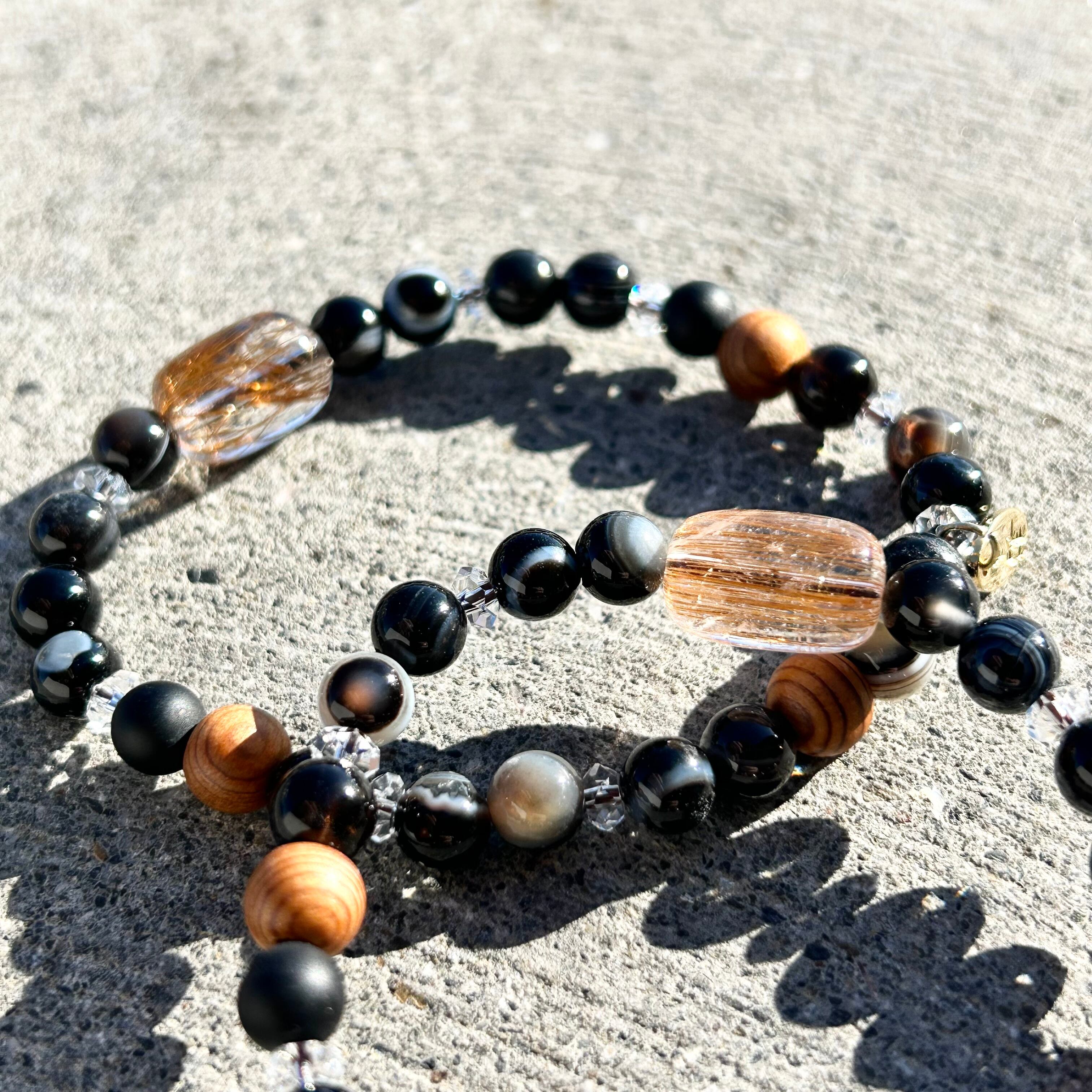 ルチルクォーツ、屋久杉、天眼石を組み合わせた厄除けブレスレットは、強力な守護と厄除け、魔除け、開運効果を持つアイテムとして人気です✨