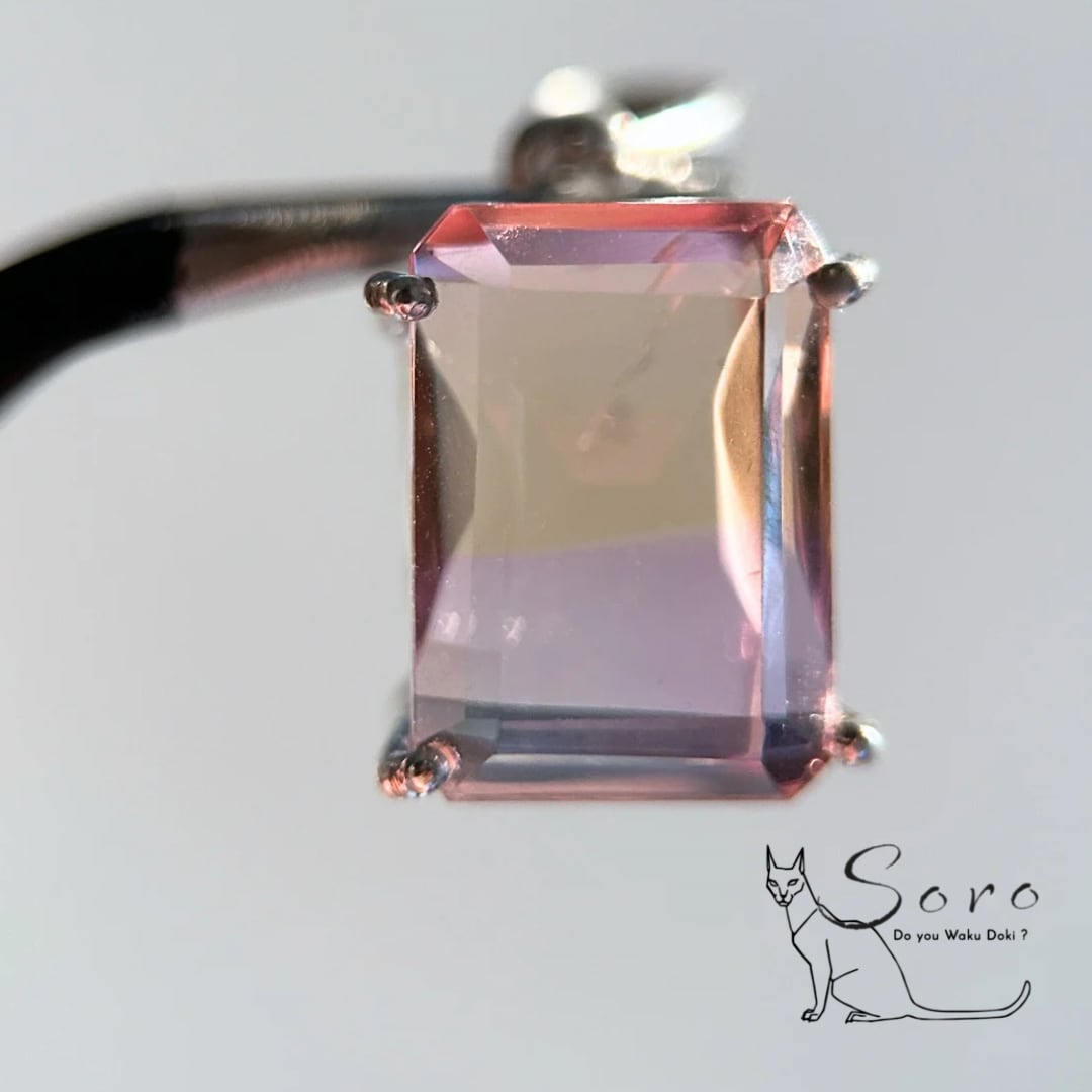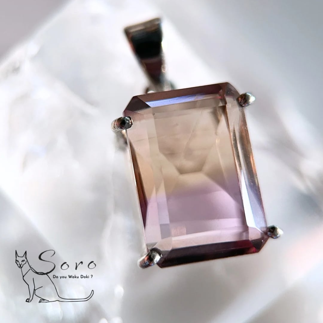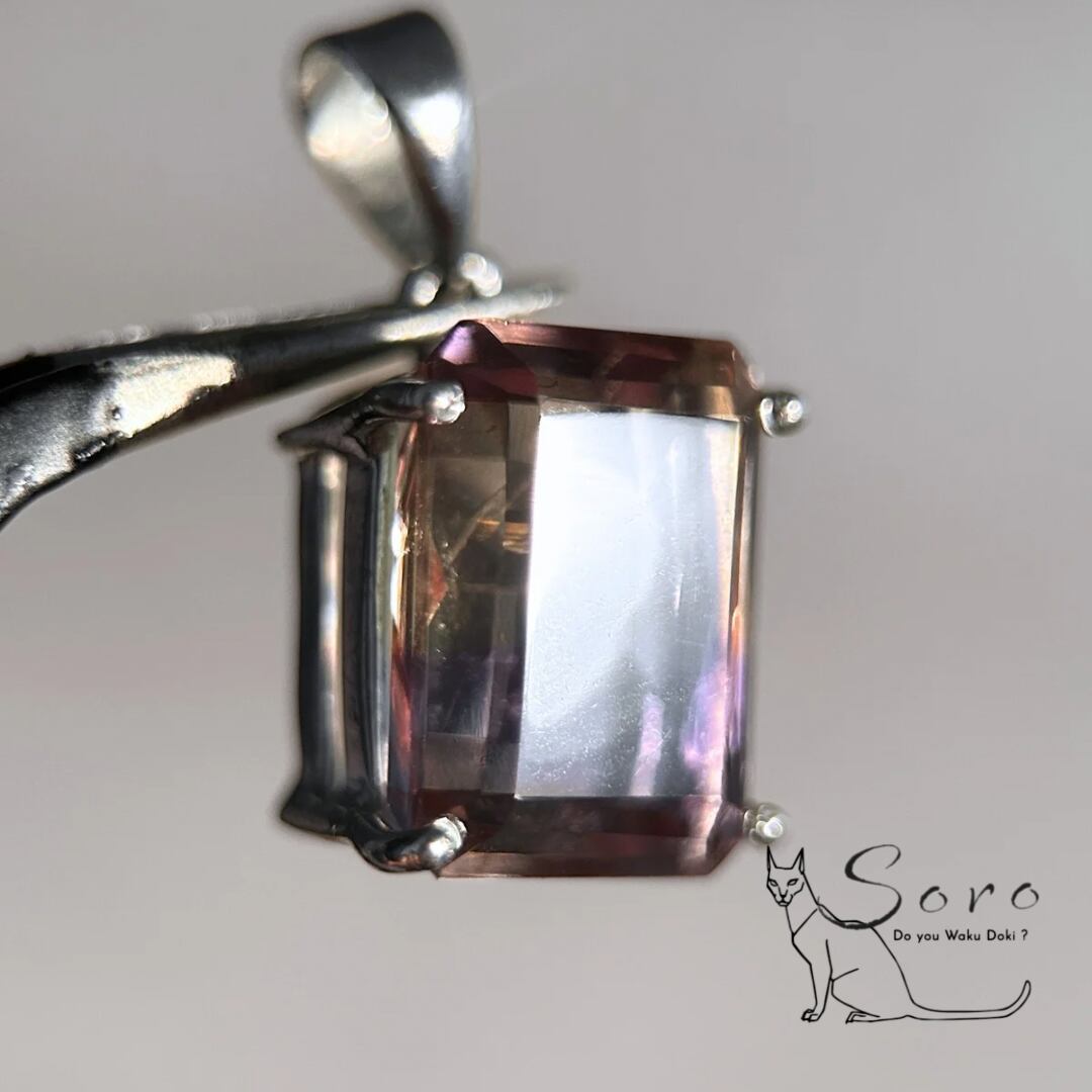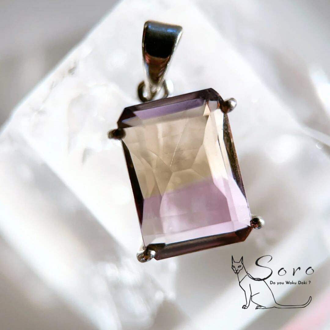 アメジストとシトリンが一つになった天然石、アメトリンのスクエアペンダントトップです。