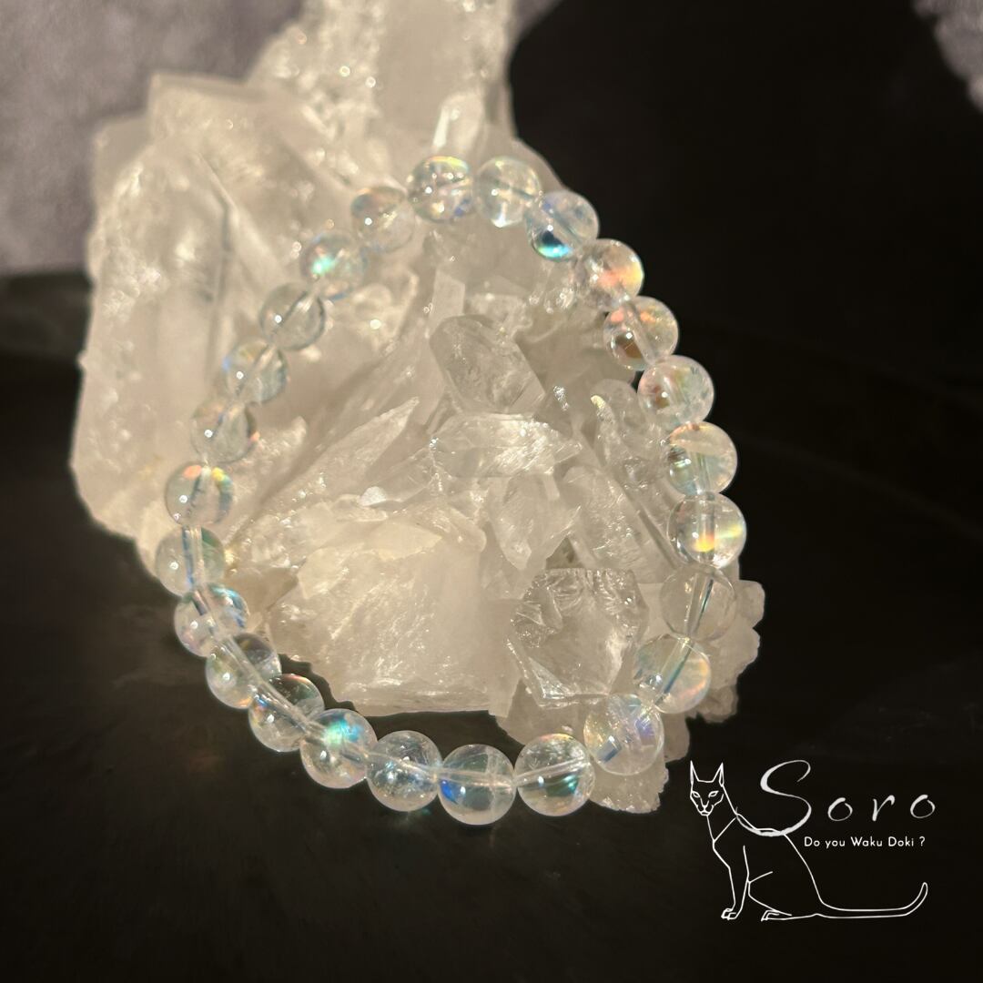 静かなホワイトの奥から現れる、鋭く澄んだブルーやピンク、虹色のシラー。