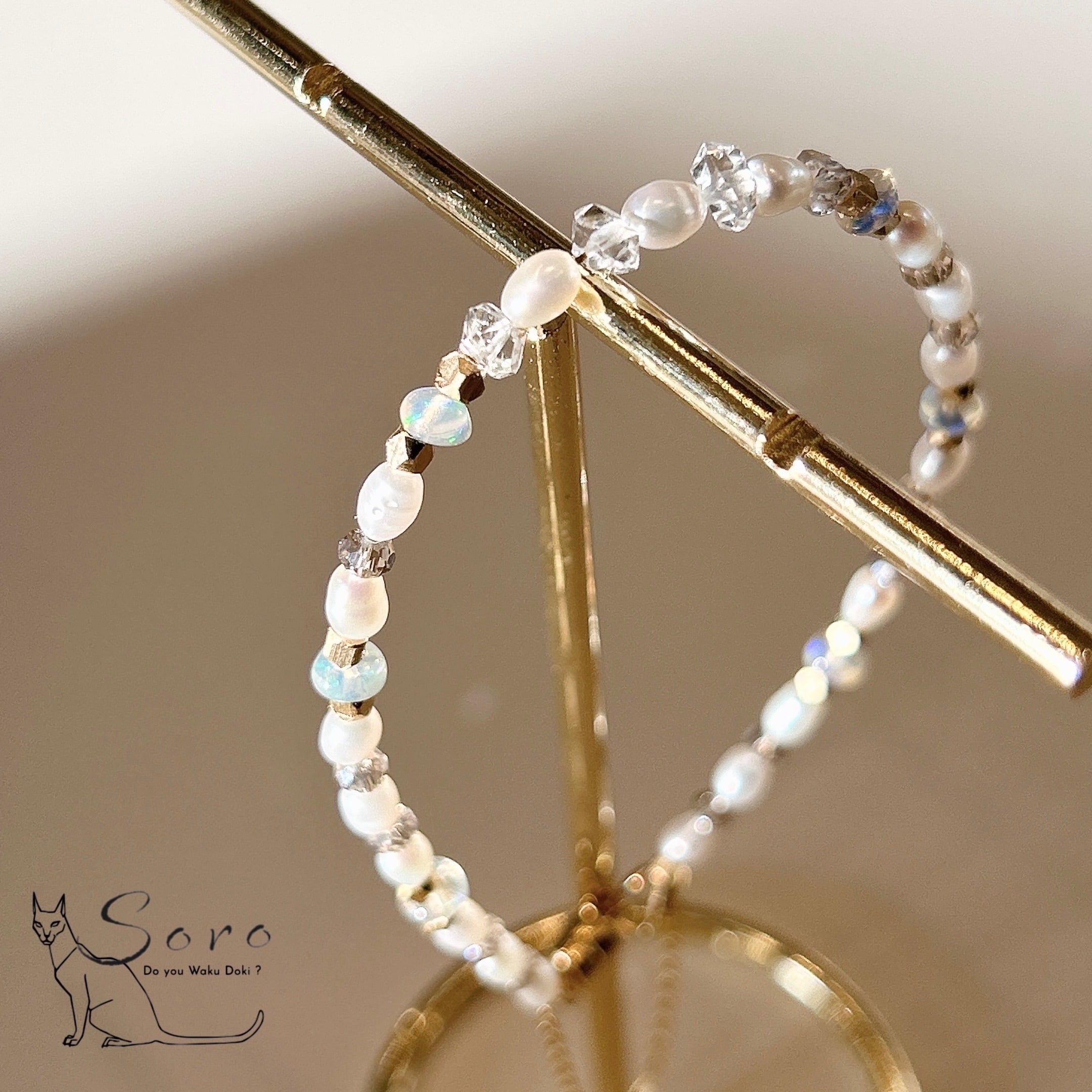 不安を取り除く 淡水パール×オパール 華奢ブレス【MG2】 | soro