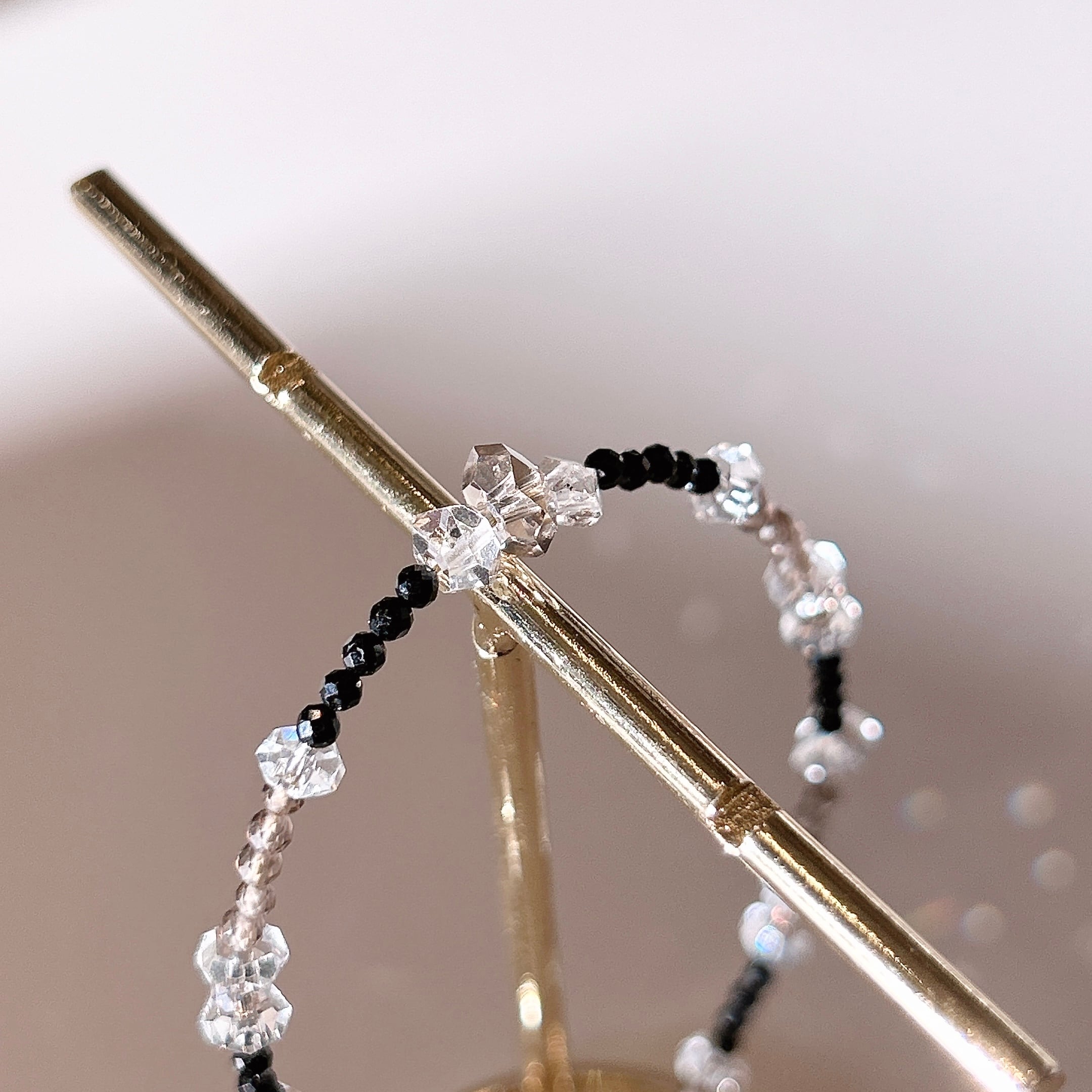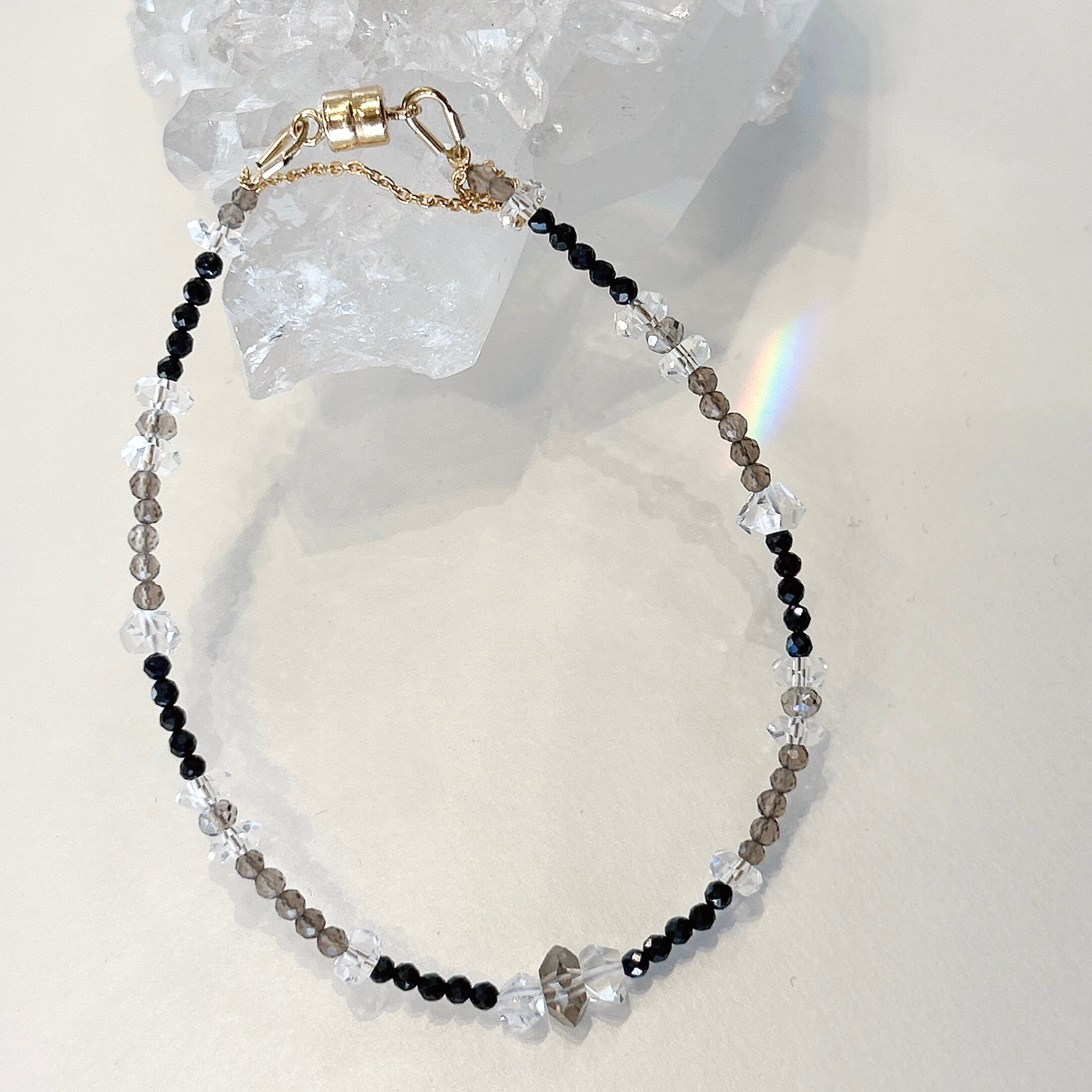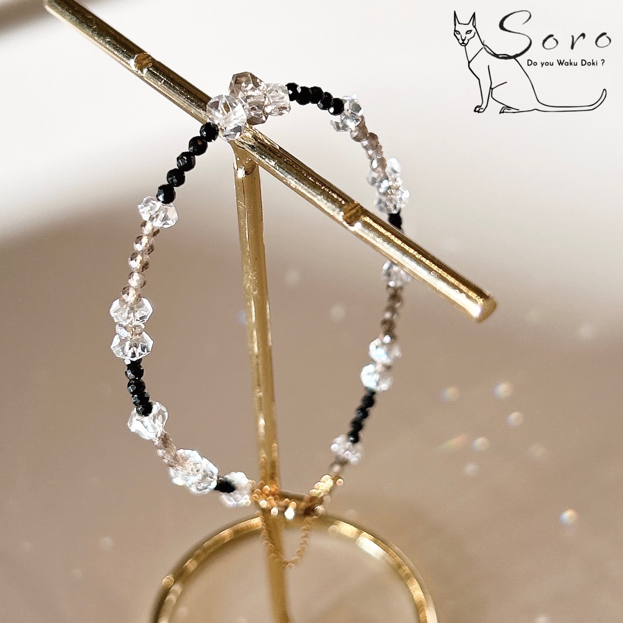 ストレス解消☆ハーキマーダイヤモンド×オニキス華奢ブレス【MG396】