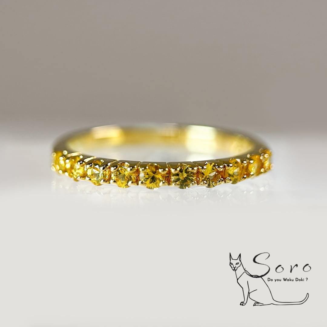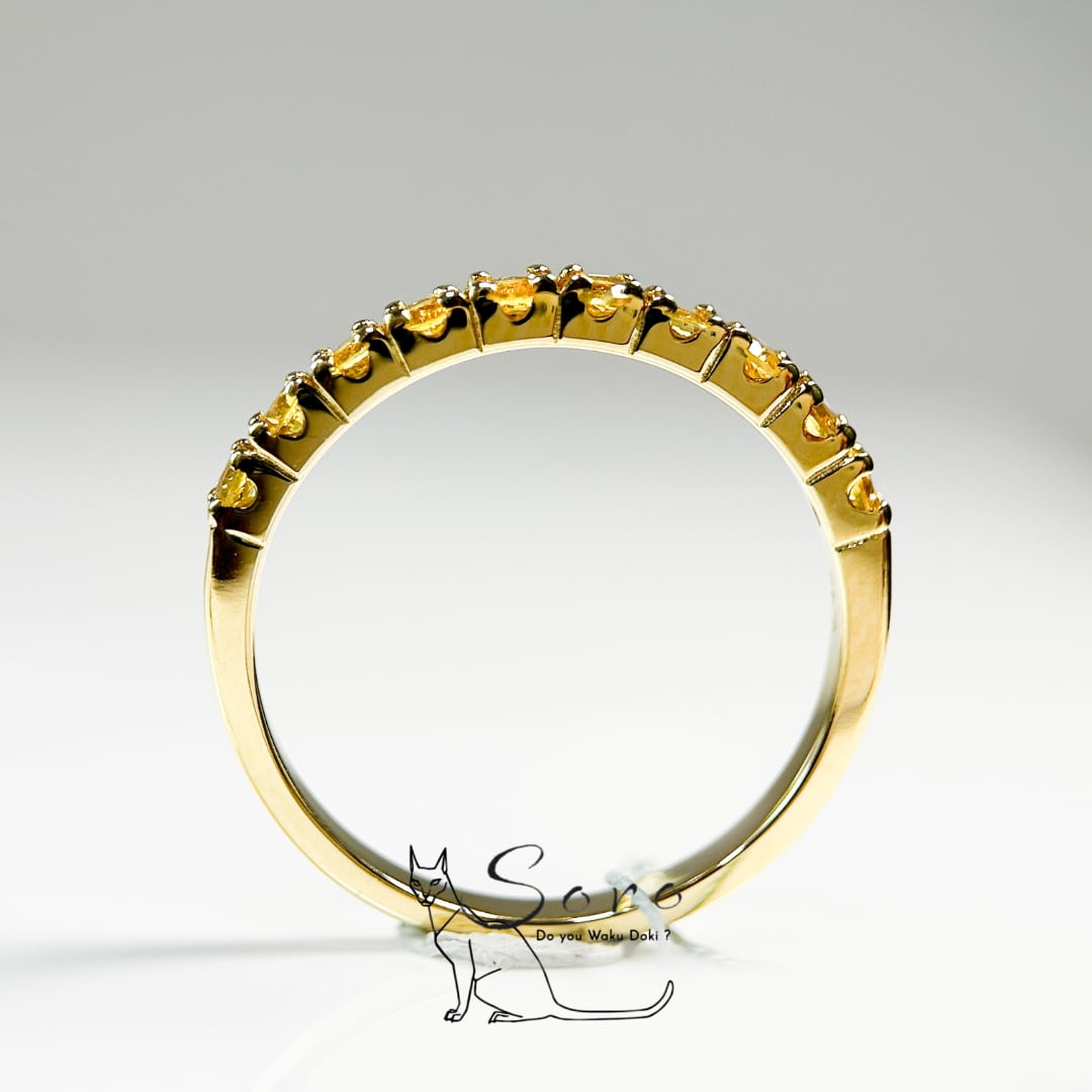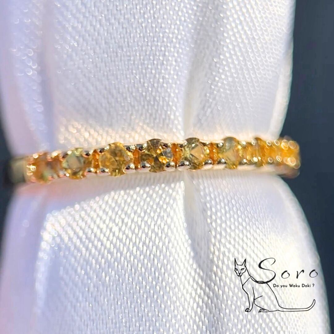 太陽の光を思わせるような温かみのある輝きが特徴で、ゴールドとの相性も非常によく、指元を華やかに彩ります。